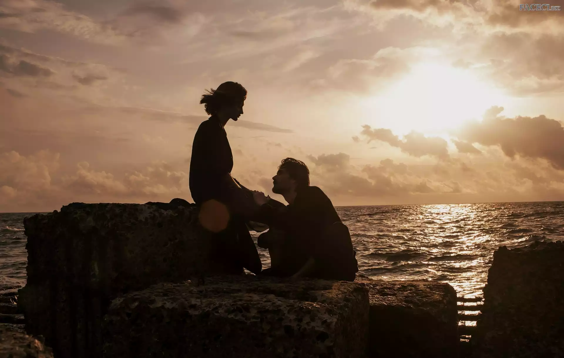 Para, Mężczyzna, Zmrok, Skały, Kobieta, Morze - faceci.biz